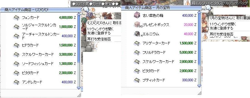>その時は一時的にBOT露店は全滅していましたが、夜中になってまた沸いてきていました。